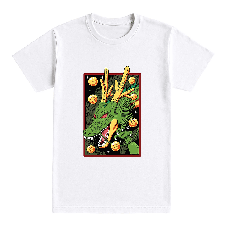 Camiseta UNISEX 100% algodón con un dragón verde imponente rodeado de esferas brillantes. Un diseño épico y llamativo que transmite poder y fantasía.